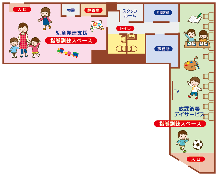 お子様が自発的に活動できるように共に考え、支援を行っております。