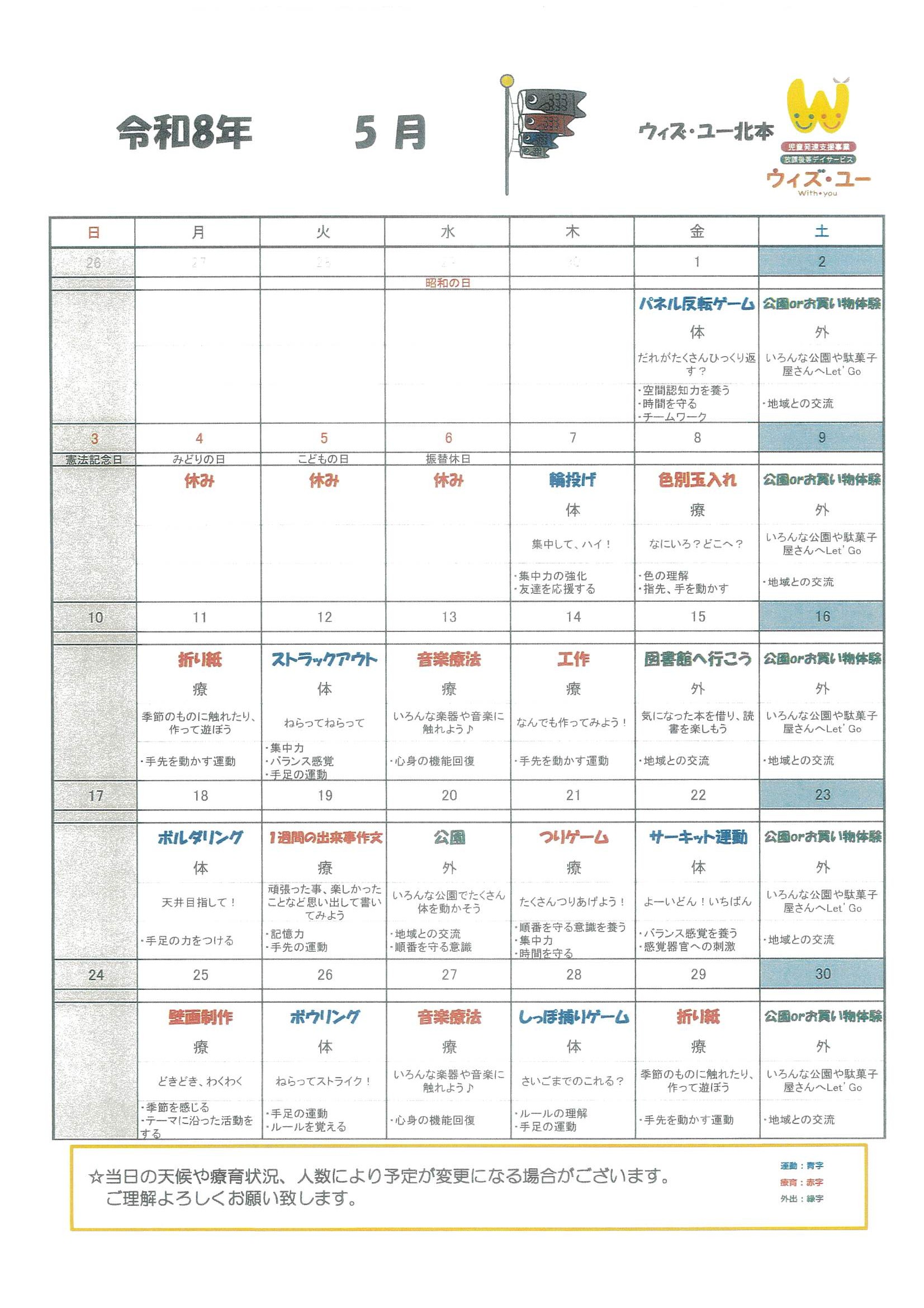 5月の予定