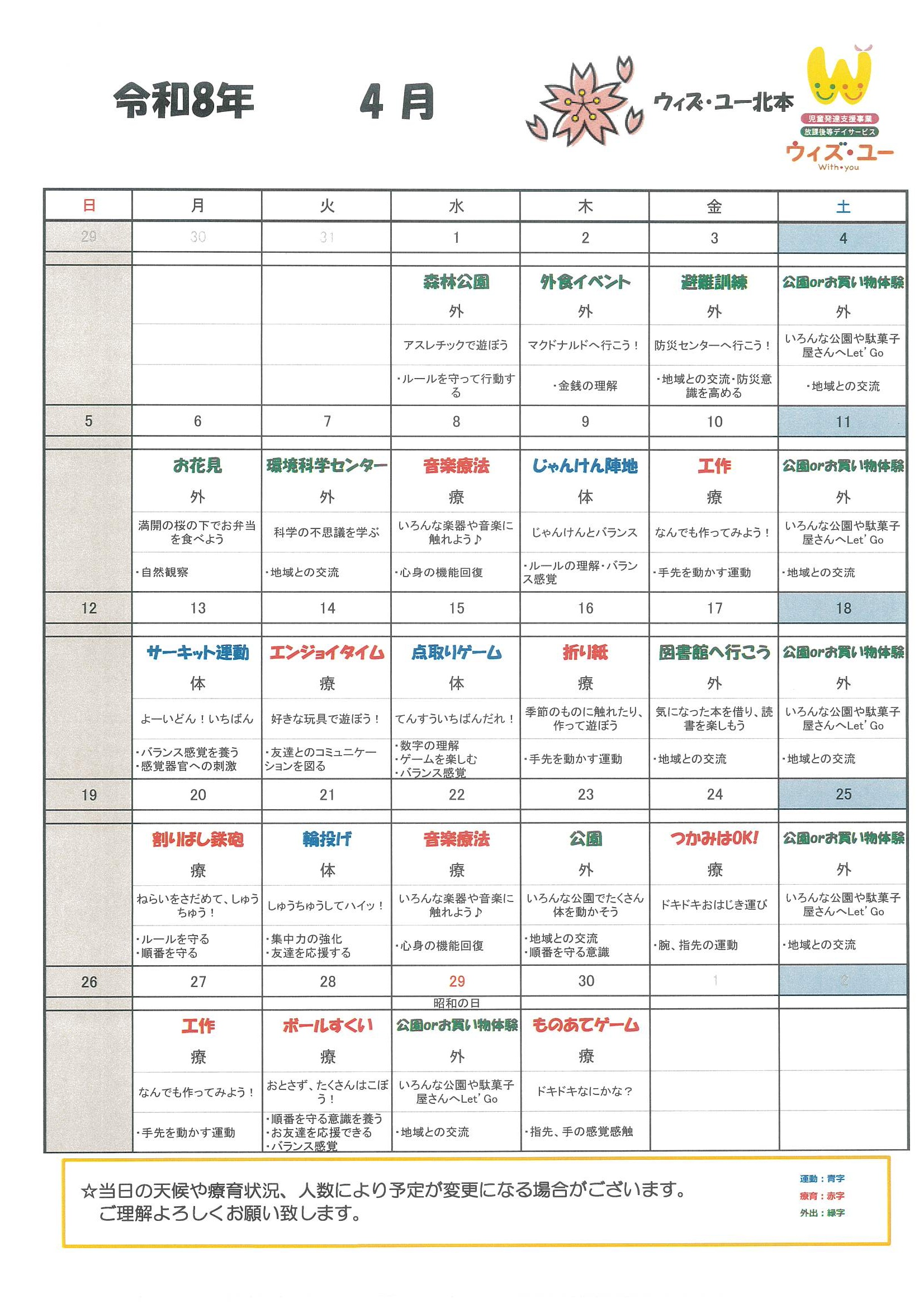 | 22 | 土 | 権現総合運動公園【新しく出来た大きい遊具の公園で思いきり遊ぼう♪】(おでかけ) |