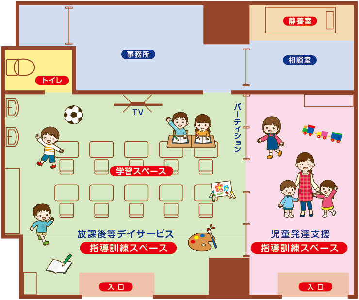 | 支援 プログラム | ■児童発達支援 こちらをご確認下さい ■放課後等デイサービス こちらをご確認下さい |