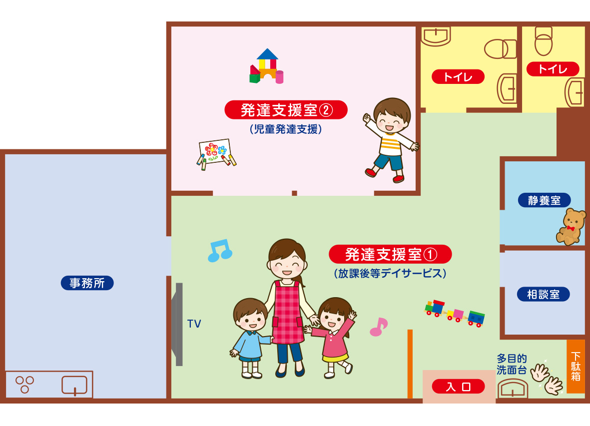 | 15:00~ | おやつ 創作・集団活動 自由遊び等 |